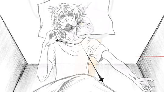 I try to portray how this can affect someone massively, how a simple everyday act such as going to bed can spiral into something bigger and lead them astray, losing their grip on reality.For some, this madness is a never-ending loop, depicted at the ending; Are they finally able to get a good night's sleep?